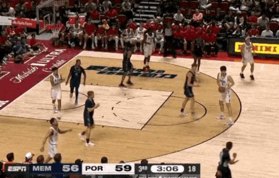 在杨瀚森背身单打的时候,灰熊球员会适时上包夹,干扰杨瀚森的运球。